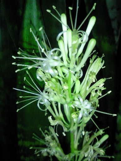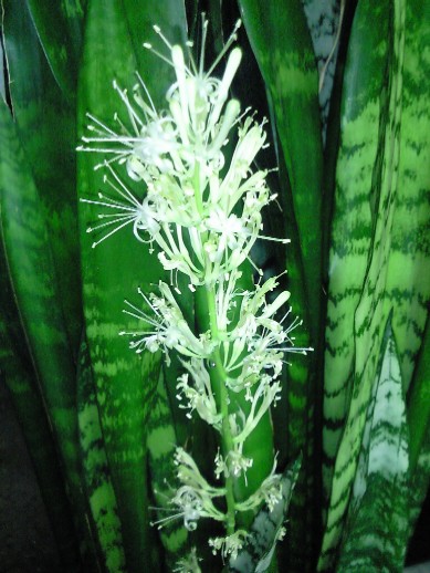 サンスベリアの花 開花7日目夜 2008年8月25日更新 2008年8月25日22時: 今夜も小雨の中、パラパラと咲いています。 残りのつぼみも、後少しです。 綺麗のピークは、22日(開花4日目)だったようです。