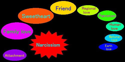 | (English) The love is the feelings to want to leave the person who is important to the self in the future. (Instinct of posterity preservation) All lives in addition to the person have the instinct of the posterity save. The life which doesn't have the instinct of the posterity save has stopped. First, if thinking that it wants to leave the posterity of the personally, being the most important is called the existence of the personally. (egocentric love) However, to leave its posterity, in addition to making itself and its near person important, the environment in the neighborhood, too, must be improved. Narcissism → Love to child → Regional love → Home country love → Love of mankind → Natural love → Earth love