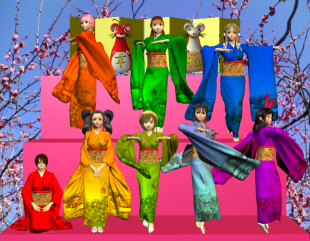 本日は、ひな祭りです。 でも、座っているだけの雛人形じゃつまらない! やっぱり、踊って欲しい! と思う方は、下記サイトを見て下さい。 ★ひな祭り:Poser + Flashで、雛人形アニメーション ※踊る雛人形(約3Mバイト) ※Poser画像を、Flashアニメで動かします。 ※お好みのフィギュアをクリックすると踊ります。 ※注意:下記の画像はJPG画像なので、動きません。 ![]() ★バレエでクルクル回るFlashアニメは、下記をクリック ↓タイトル画像の8人のフィギュアが、 ・マウスを近付けると、手を振ります ・クリックすると、踊り始めます |